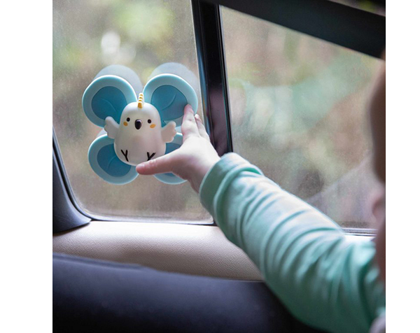 Diseñado para fomentar las habilidades motoras finas, el juego sensorial y el aprendizaje de causa y efecto, el juguete presenta un trío de lindos animales australianos, cada uno con dos, tres o cuatro paletas giratorias. Una fuerte ventosa permite una fácil fijación a cualquier superficie lisa (piense en bañeras, azulejos, sillas altas, espejos, frigoríficos y ventanas de automóviles).